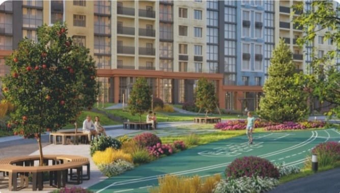 . Харизматичный и яркий, квартал привлекает внимание своим уникальным стилем, сочетая современность, прогрессивность и элегантность. Территория двора разбита на множество зон — от комфортных зон отдыха и площадок для спортивных занятий до красочных цветочных островов. Помимо трех детских плейхабов, предусмотрены зимние активности во дворе. В лобби будут зоны для переговоров, чтения книг, ожидания такси, а также помещения для хранения велосипедов и детских колясок.