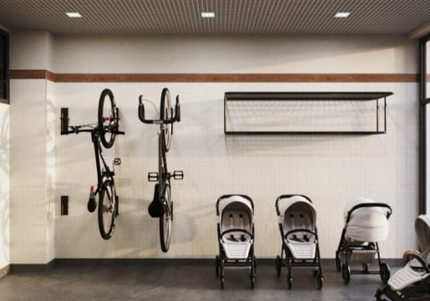 Холлы включают места хранения общего пользования, которые открыты для всех соседей. Оставьте коляску и велосипед на 1 этаже, чтобы путь до квартиры прошёл налегке. Также в доме предусмотрены помещения для индивидуального хранения несезонных вещей. Кладовые доступны к покупке.