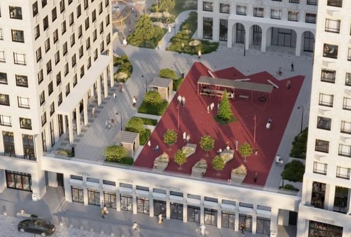 Торговые галереи вынесены за пределы огороженной территории в общий цоколь. Здесь вы найдете всё необходимое для повседневной жизни: супермаркет, аптеку, кафе, фитнес - клуб, салон красоты, пункты доставки и многое другое.
