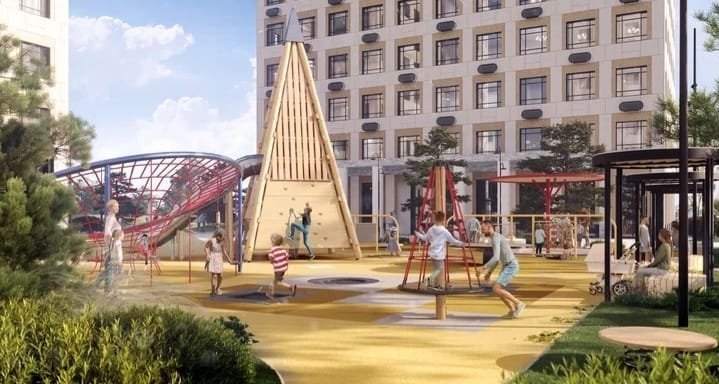 Отдельная спортивная зона вынесена за пределы двора и включат футбольное поле, зимние горки, каток, зону для воркаута и первую в Хабаровске скейт - площадку в жилом комплексе. Здесь можно заниматься спортом и активно проводить время.